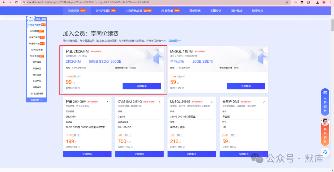 【腾讯云】2核2G云服务器新老同享99元/年续费同价,8888元代金券限时抢