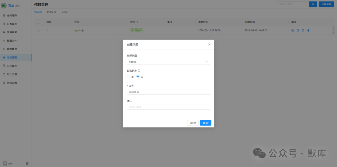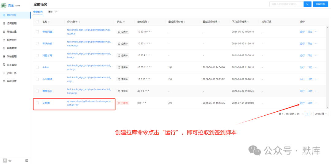 1.拉库(在“定时任务”中)