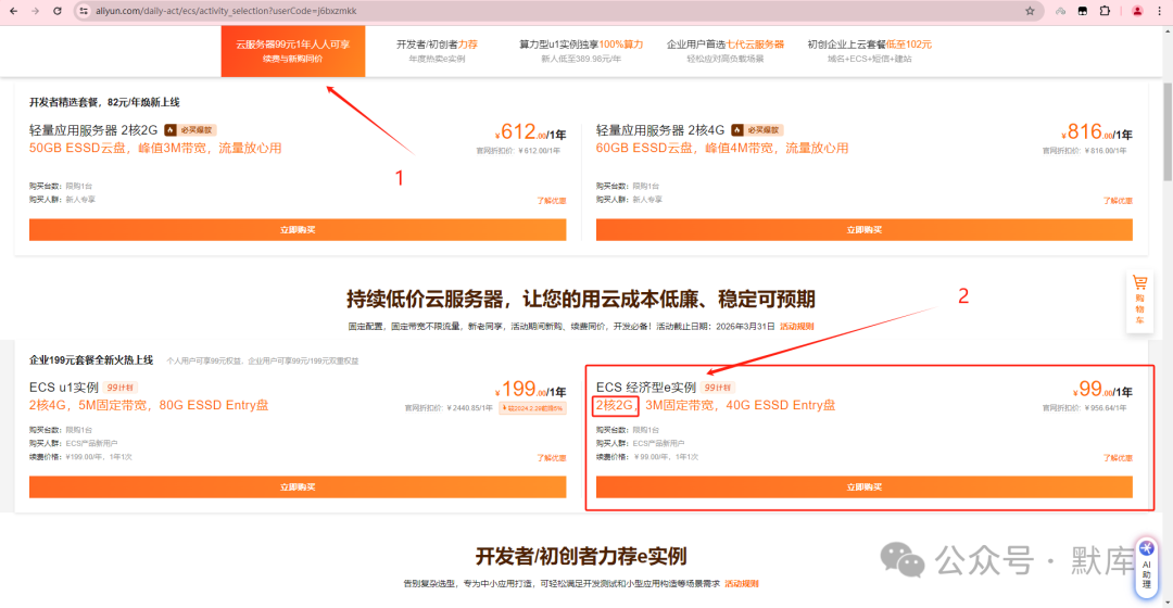 每年节假日、618阿里云都会搞些优惠活动,新用户一般都能直接免费领取到几个月的云服务器,也可以低价购买长期的云服务器,用来熟悉云服务就比较合适。