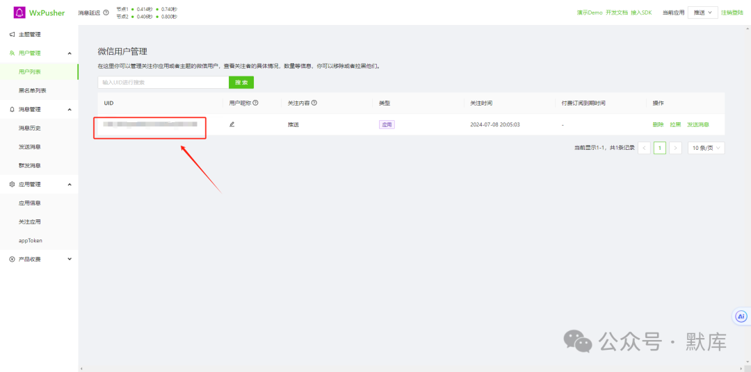 到用户列表中复制uid,如uid