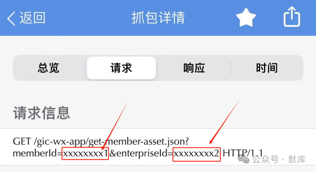需要memberId、enterpriseId。抓包工具抓取所需的值,如图复制所需要的值,如:xxxxxxxx1、xxxxxxxx2。此值后面表格中需要用到。